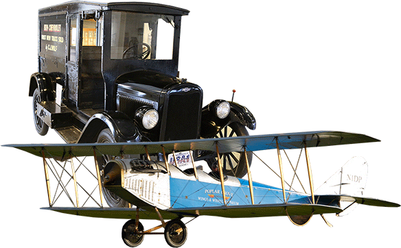 Dedicated to transportation history spanning between the years of 1903 – 1957, our museum is located on the Poplar Grove Airport (C77) in northern Illinois and features 12 acres of land that are occupied by several early 20th century airplane hangars and automotive garages. Our buildings have been saved from destruction and relocated to our campus where they have been renovated for future generations to enjoy. Our mission focuses not only on preserving history, but also educating people and future generations on the history of wings and wheels.